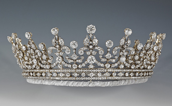 One of Her Majesty’s most recognizable jewels is The Girls of Great Britain and Ireland Tiara. The diamond tiara was a gift to the future Queen Mary, on the occasion of her marriage to the future King George V in 1893.