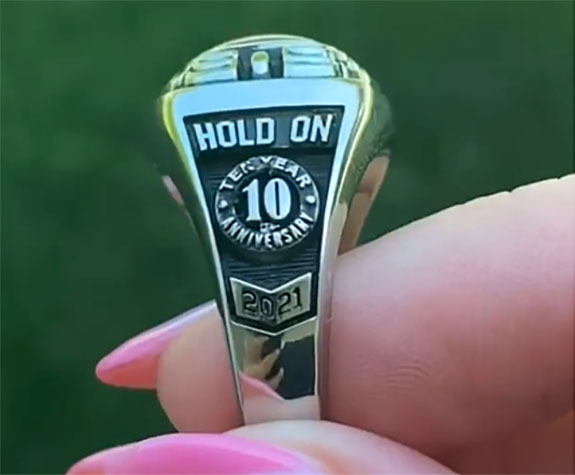The right side of the ring displays the title of the movie's theme song, "Hold On" by Wilson Phillips. Just below the song title is a 10-year-anniversary emblem and the year 2021.